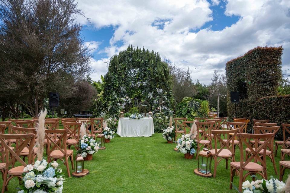 Parqueadero, Cocina, Capilla, Terraza, Zonas verdes, Pista de Baile, Carpa, Jardines