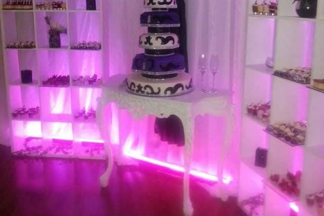 Montaje de mesas de postres o dulces