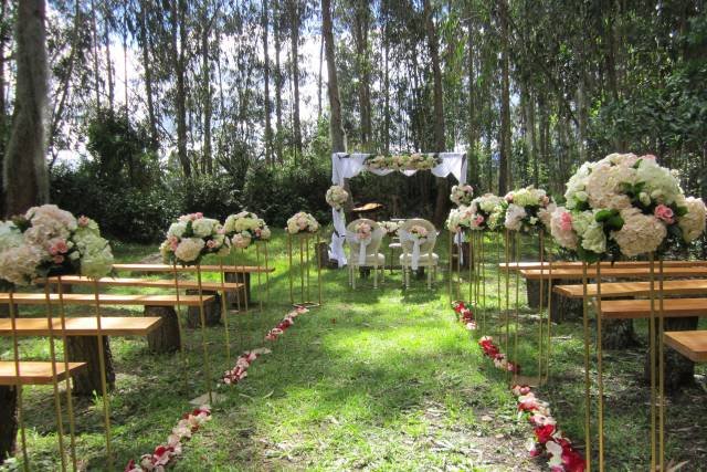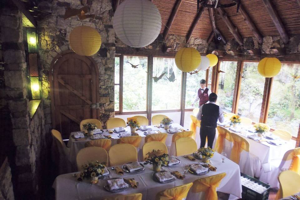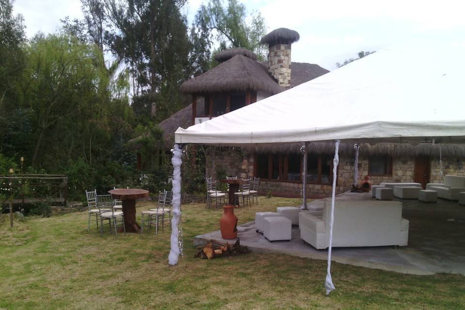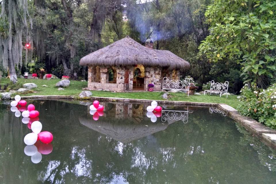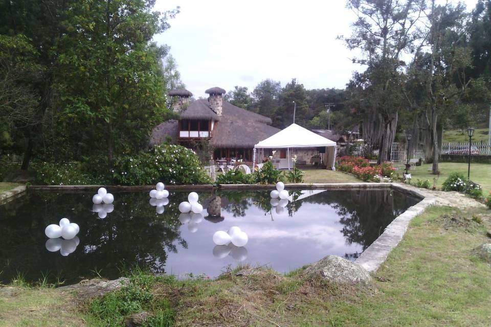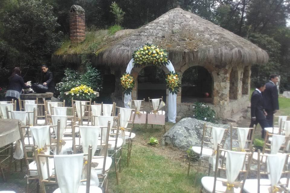 Hacienda Casa Xiegua cuenta con extensos terrenos sobre las cantarinas aguas del Río Neusa. La arquitectura es de piedra, madera y con techos de paja que, todo en su conjunto hacen de este recinto un lugar mágico y solemne para su matrimonio. Los espacios generales para su evento podrán ser los siguientes dentro de la hacienda: