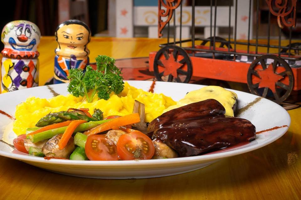 Restaurante Bar Circo ofrece lo mejor de la comida colombiana y se adapta a todo tipo de necesidades ofreciendo menús carnes, pescados, vegetarianos, variedad de pastas y cualquier sugerencia de los novios que esté a su alcance.