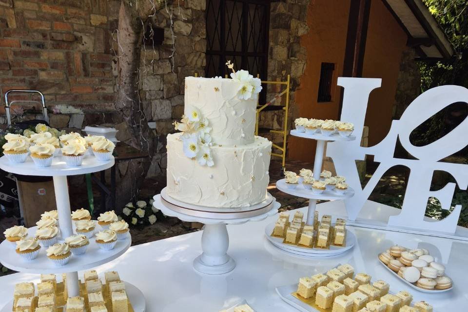 Sus especialidades incluyen ponqués de matrimonio, mesas de postres dulces, detalles para invitados y mucho más. Disfruten de tortas tradicionales, temáticos, de pisos, por separado y diseños exclusivos. Asi mismo, brinda servicios de venta y elaboración de ponqués a medida, postres individuales, mousse, cheesecake, cupcakes, alfajores, brownies, fresas con chocolate, montaje de mesas de postres, pasabocas de sal y mucho más.